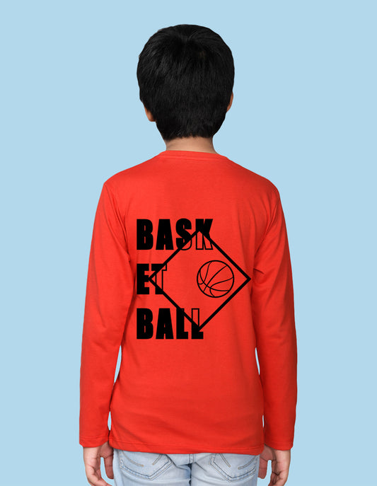 NUSYL Boy's Red Basketball Text Printed Regular Fit T-Shirt