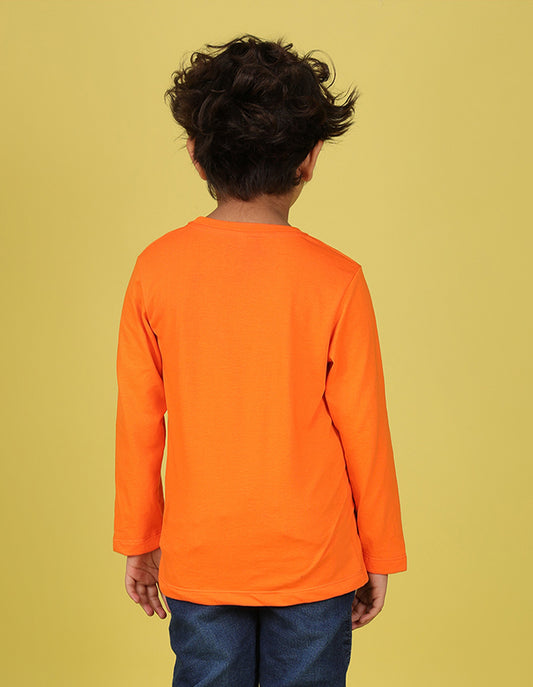 NUSYL Boy's Orange Roar text Printed Full sleeves T-Shirt