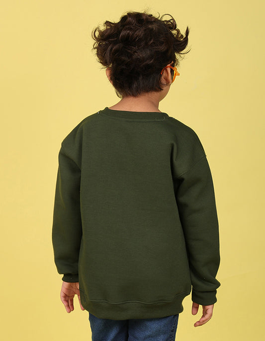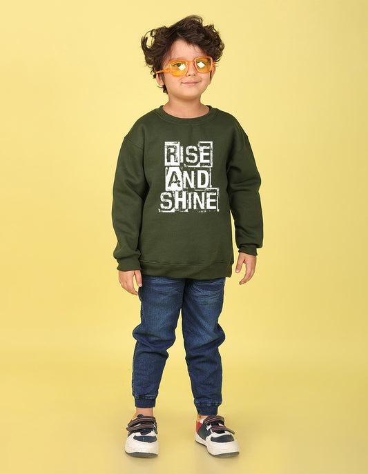 NUSYL Boy's Olive Rise and shine text Printed Oversized Round neck Sweatshirt