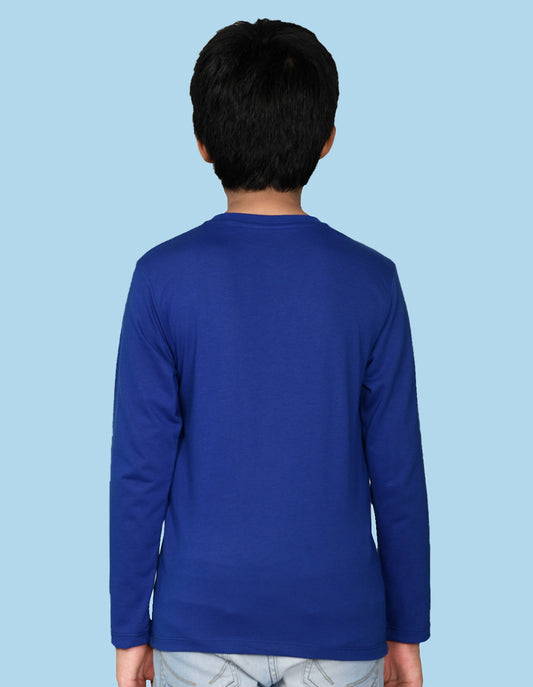 NUSYL Boy's Royal Blue Stay Happy Printed Full sleeves T-Shirt