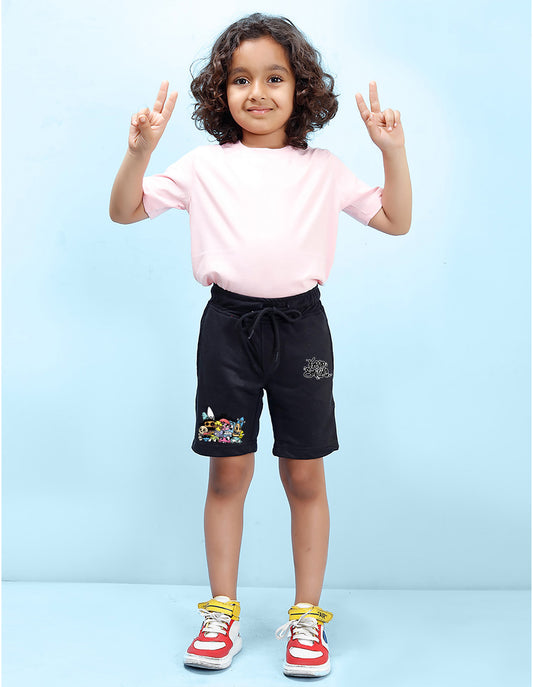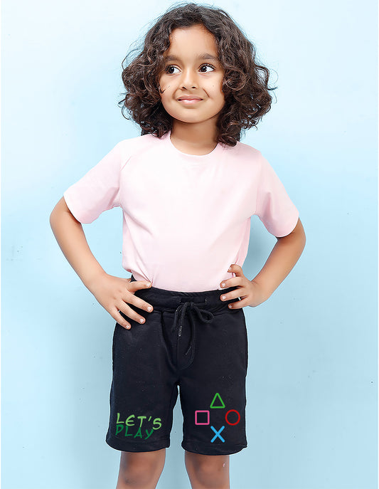 Nusyl Boys Black Let's Play Text Printed Shorts