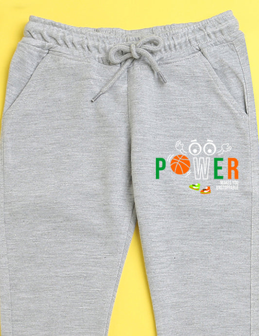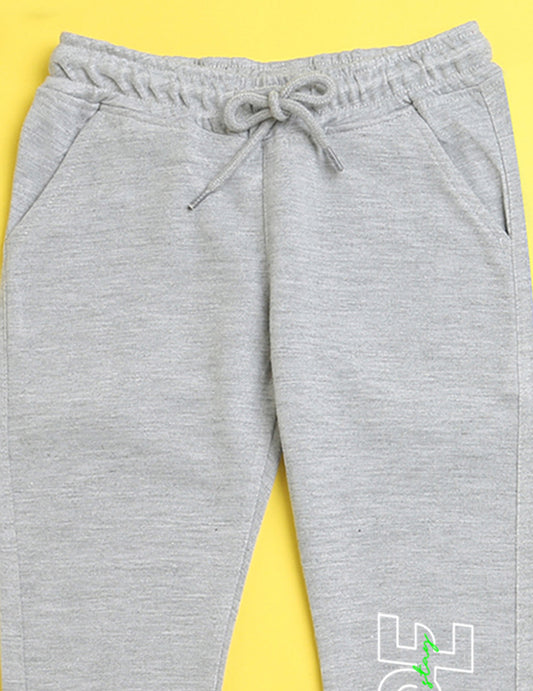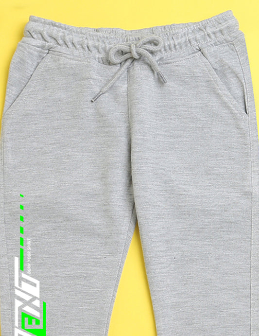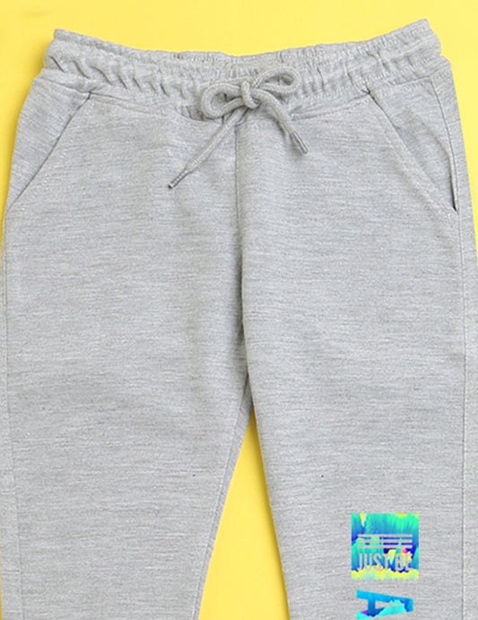 Grey text printed kids unisex treck pants