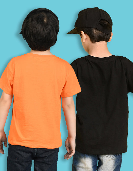 Nusyl Boys Orange & Black Solid Oversized T-Shirt - Pack of 2