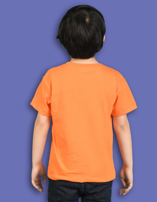 Nusyl Boys Orange Wild Text Printed Short Sleeve Oversized T-Shirt