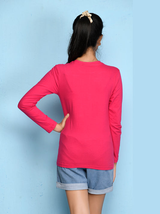 Girls Hot Pink Bio Washed Cotton Short Sleeve Solid T-shirt