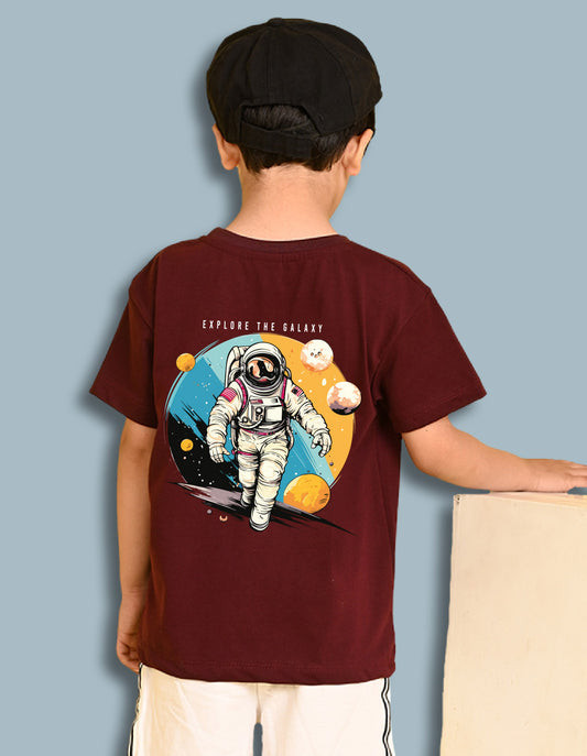 Nusyl Boys Wine Astronaut & Text Printed Short Sleeve Oversized T-Shirt