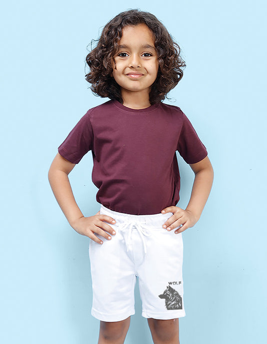 Nusyl Boys White Wolf Printed Shorts
