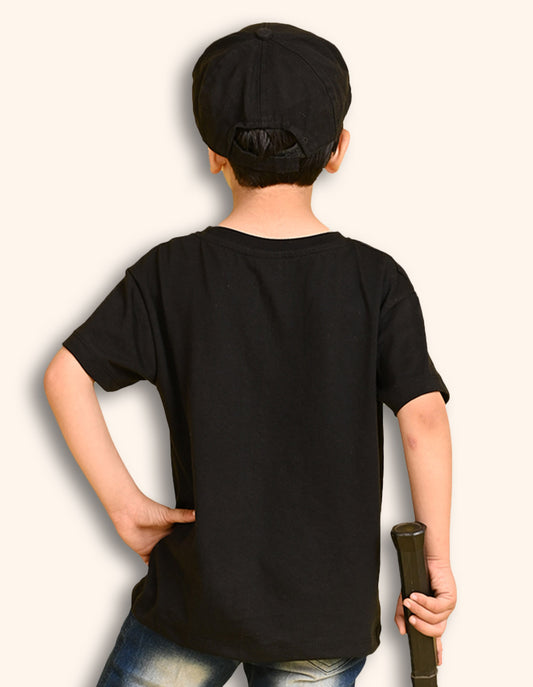 Nusyl Boys Black Bio Washed Cotton Short Sleeve Solid T-shirt