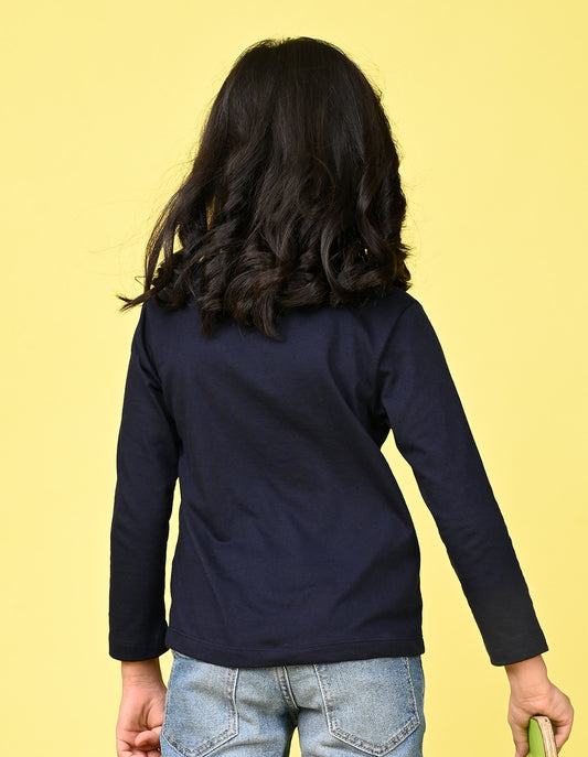 NUSYL Cotton blend full sleeves Princess of everything text Printed Tee-Navy Blue