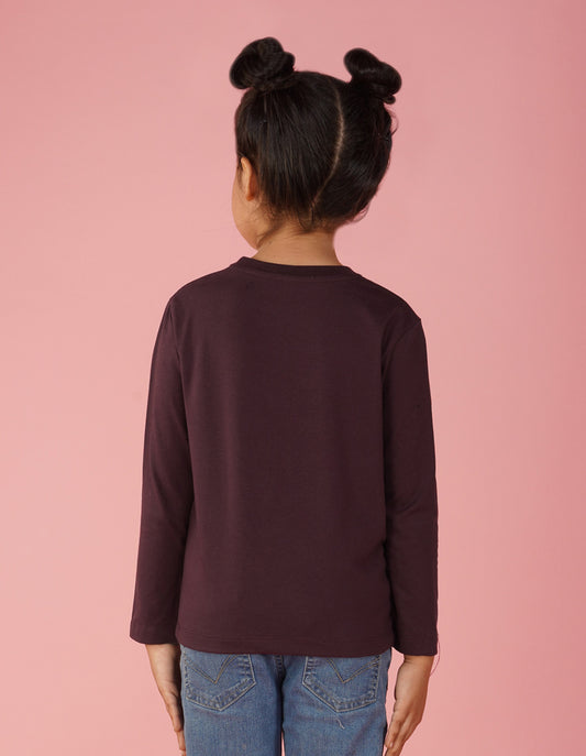 NUSYL Cotton blend full sleeves Princess of everything text Printed Tee-Wine