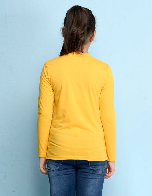 NUSYL Cotton blend full sleeves Super girl text Printed Tee-Yellow