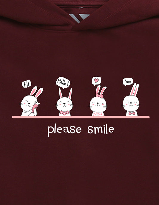 Nusyl Girl's burgundy Please smile Printed hoodie