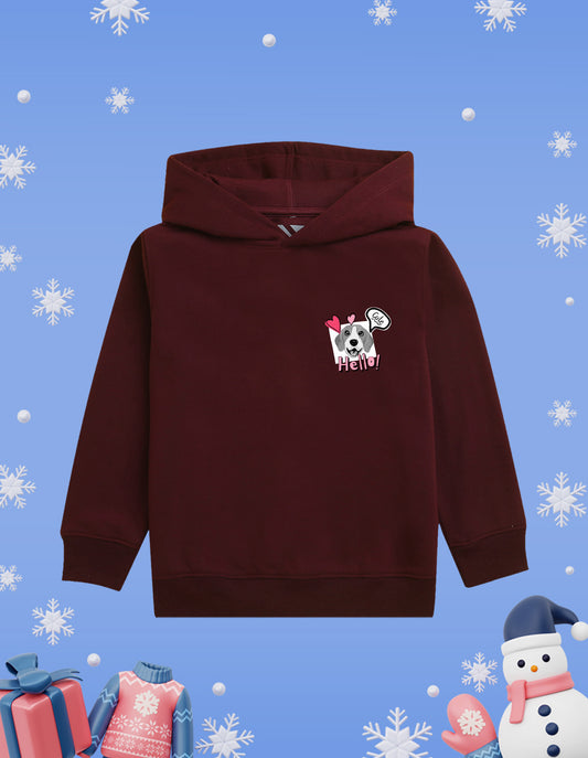 Nusyl Girl's burgundy Dog & hellow text Printed hoodie