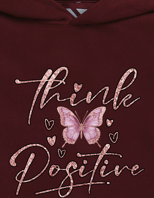 Nusyl Girl's burgundy Butterfly & Think Positive text Printed hoodie