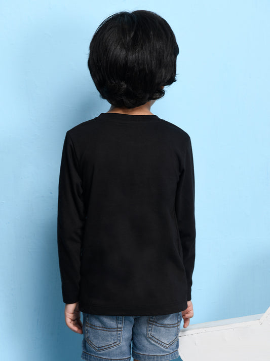 Nusyl Black Bike & Text Printed Full Sleeve Cotton T-Shirts for Boys