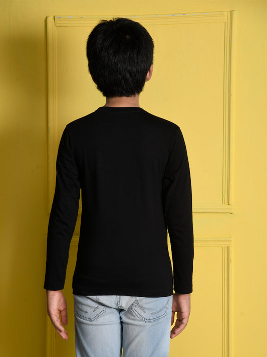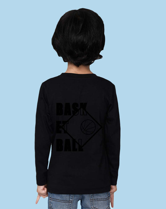 Nusyl Black Basketball Printed Full Sleeve Cotton T-Shirts for Boys