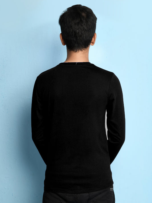Nusyl Black Biowashed Cotton Full Sleeve T-shirt