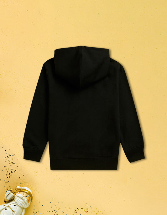 Nusyl Boy's Black Champions 01 Text Printed Hoodie