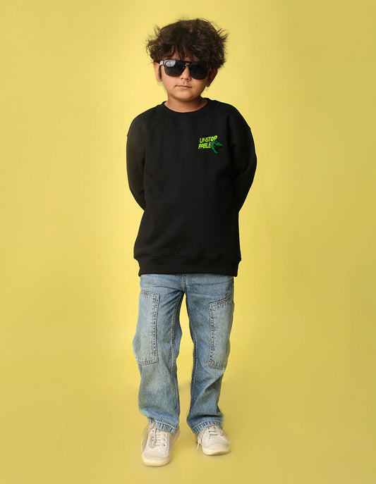 NUSYL Boy's Black Unstoppable text Printed Oversized Round neck Sweatshirt