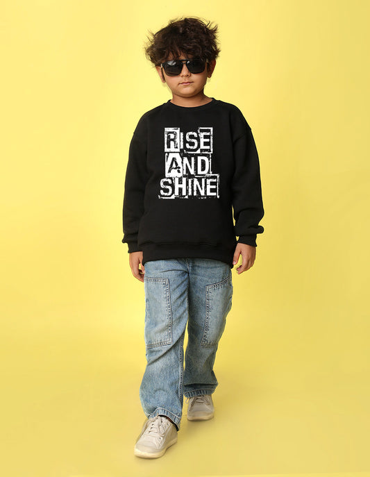NUSYL Boy's Black Rise and shine text Printed Oversized Round neck Sweatshirt
