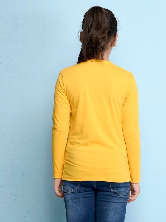 Yellow Text Printed Girls T-shirt