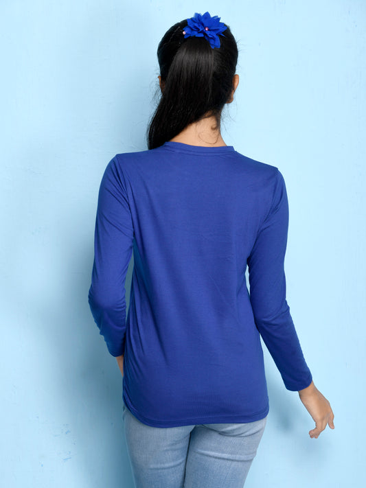 Royal Blue Text Printed Girls T-shirt
