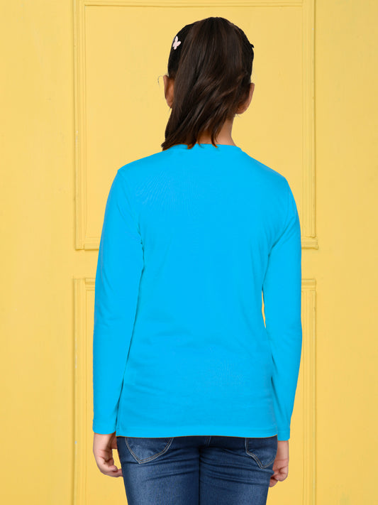 NUSYL Cotton blend full sleeves butterfly & text Printed Tee-Sky Blue