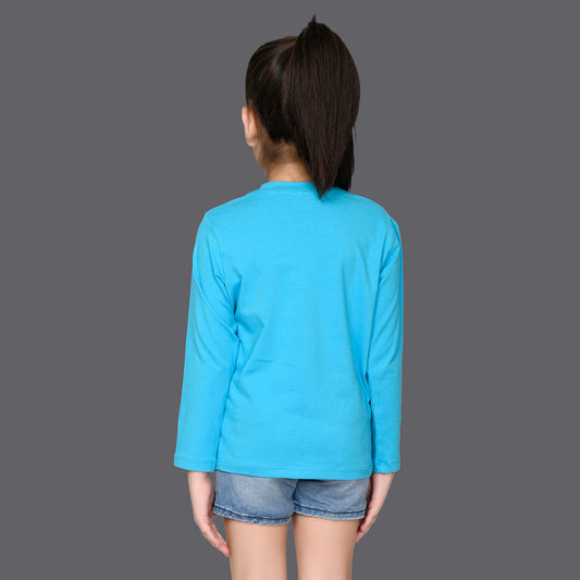 Nusyl Girls Sky blue Travel Mood Text Printed Full sleeve T-Shirt