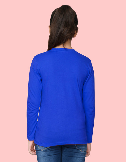 NUSYL Cotton blend full sleeves Wonderful girl text Printed Tee-Royal Blue