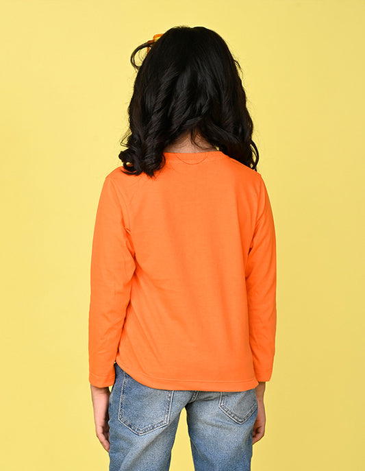NUSYL Cotton blend full sleeves Little princess text Printed Tee-Orange