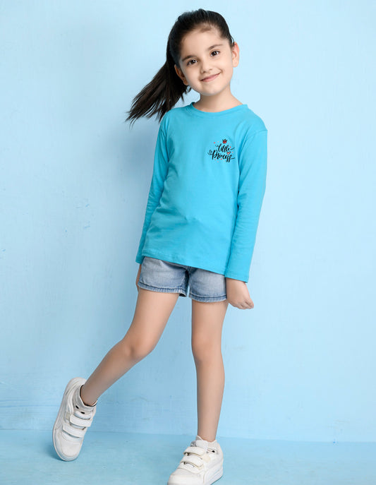 NUSYL Cotton blend full sleeves Little princess text Printed Tee-Sky Blue
