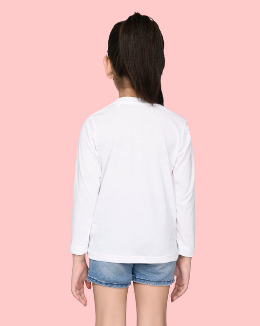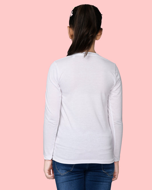 Nusyl Girls White Love Printed Full Sleeve T-shirt