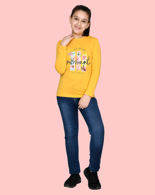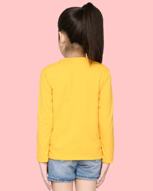 Nusyl Girls Yellow Flower Pinted Full Sleeve T-shirt