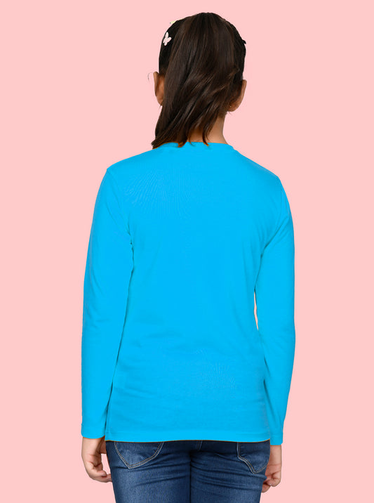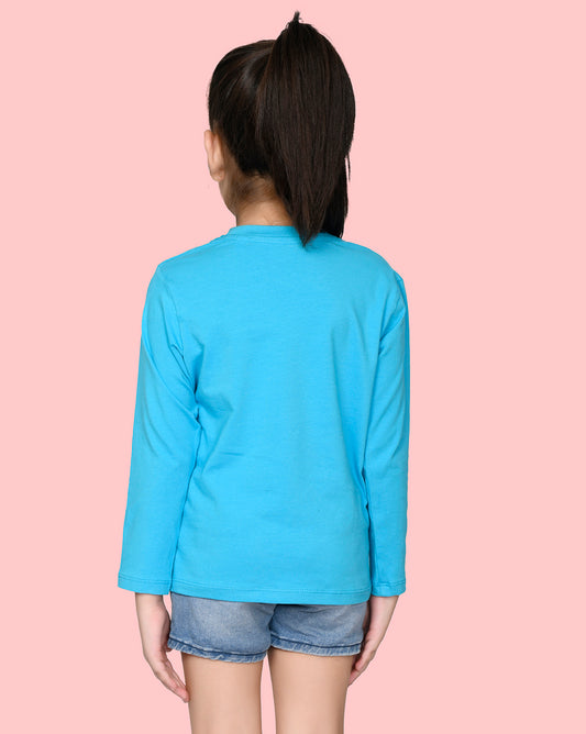 Nusyl Girls Sky Blue Flower Pinted Full Sleeve T-shirt