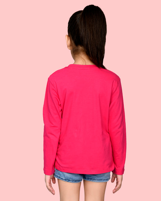 Nusyl Girls Hot Pink Flower Pinted Full Sleeve T-shirt
