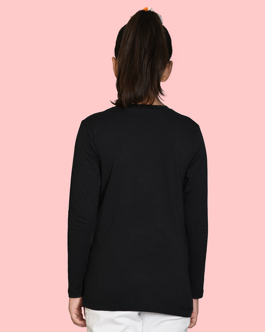 Nusyl Girls Black Astronaut Printed Full Sleeve T-shirt