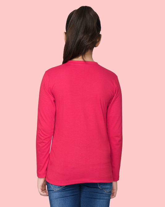 Nusyl Girls Hot Pink Astronaut Printed Full Sleeve T-shirt