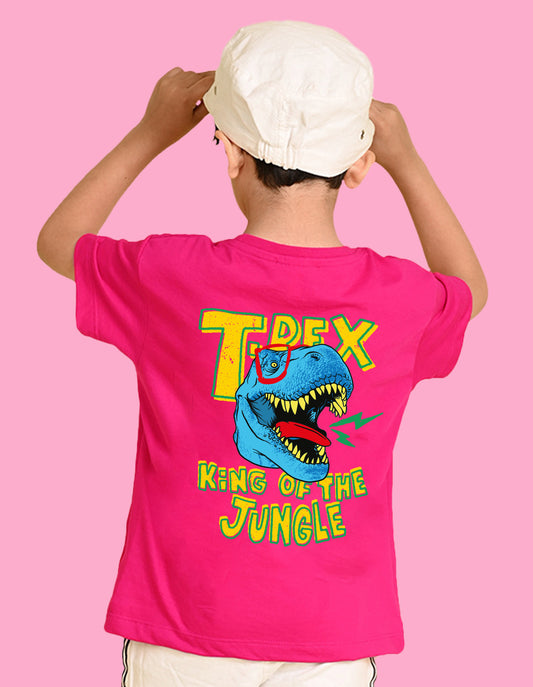 Nusyl Boys Hot Pink T-Rex Text Printed Short Sleeve Oversized T-Shirt