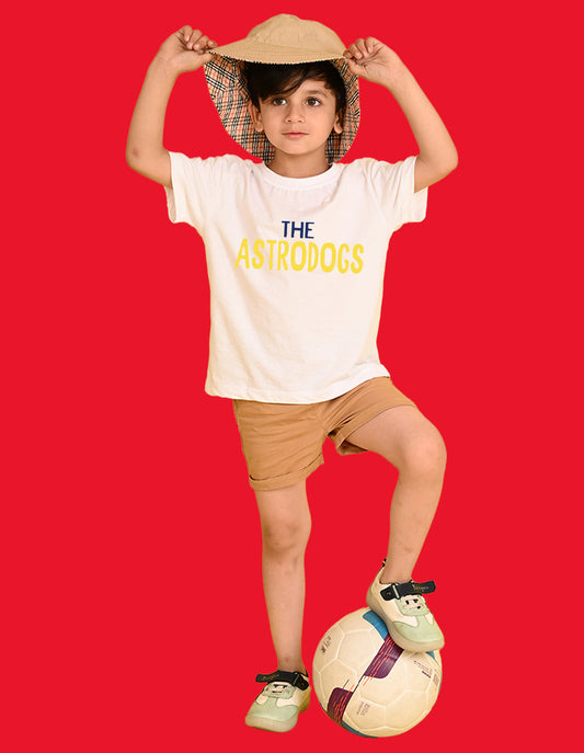 Nusyl Boys White The Astrodogs Text Printed Short Sleeve Oversized T-Shirt