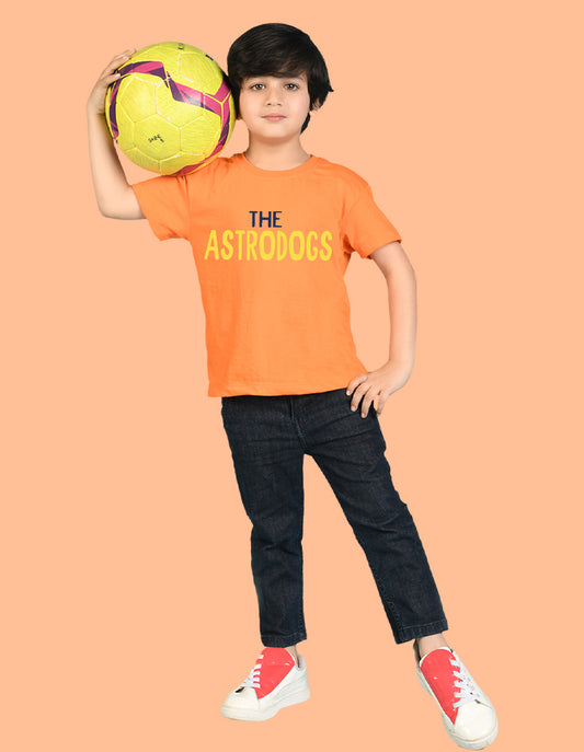 Nusyl Boys Orange The Astrodogs Text Printed Short Sleeve Oversized T-Shirt
