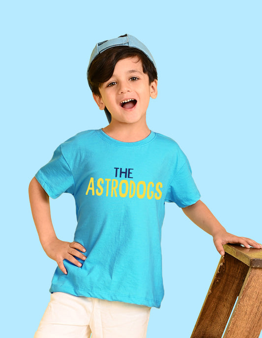 Nusyl Boys Sky Blue The Astrodogs Text Printed Short Sleeve Oversized T-Shirt