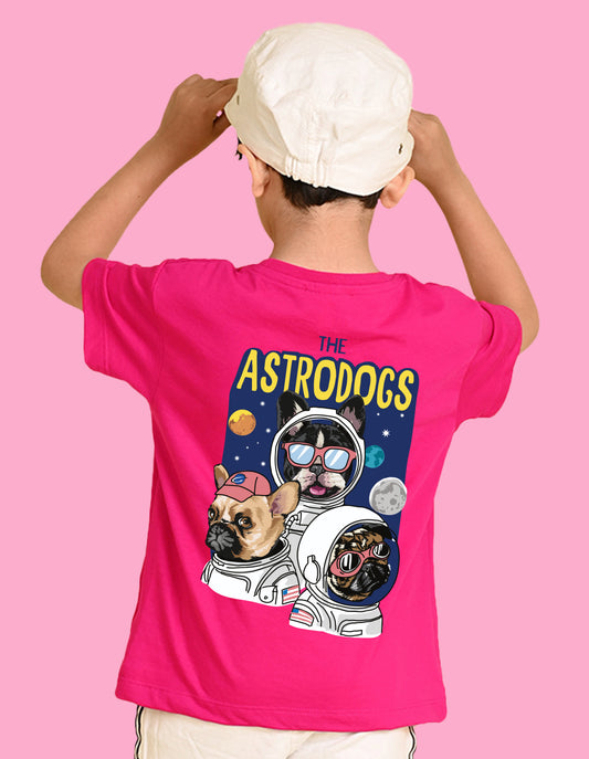 Nusyl Boys Hot Pink The Astrodogs Text Printed Short Sleeve Oversized T-Shirt