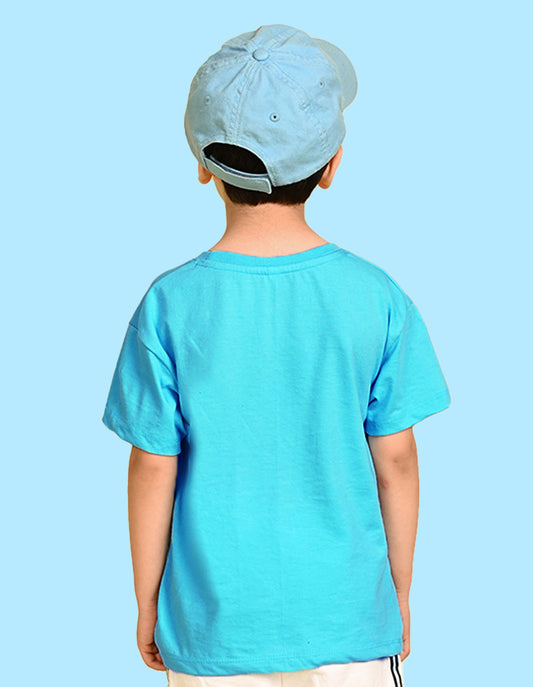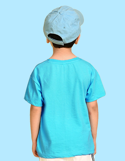 Nusyl Boys Sky Blue Play All Day Text Printed Short Sleeve Oversized T-Shirt
