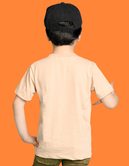 Nusyl Boys Beige Robot Text Printed Short Sleeve Oversized T-Shirt