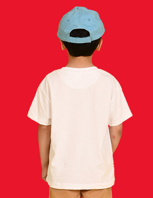 Nusyl Boys White Robot Text Printed Short Sleeve Oversized T-Shirt