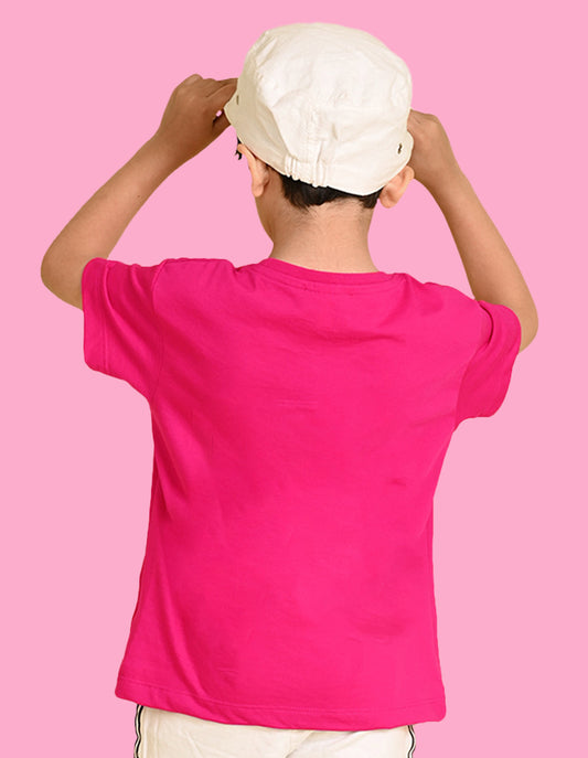 Nusyl Boys Hot Pink Will Not Stop Text Printed Short Sleeve Oversized T-Shirt