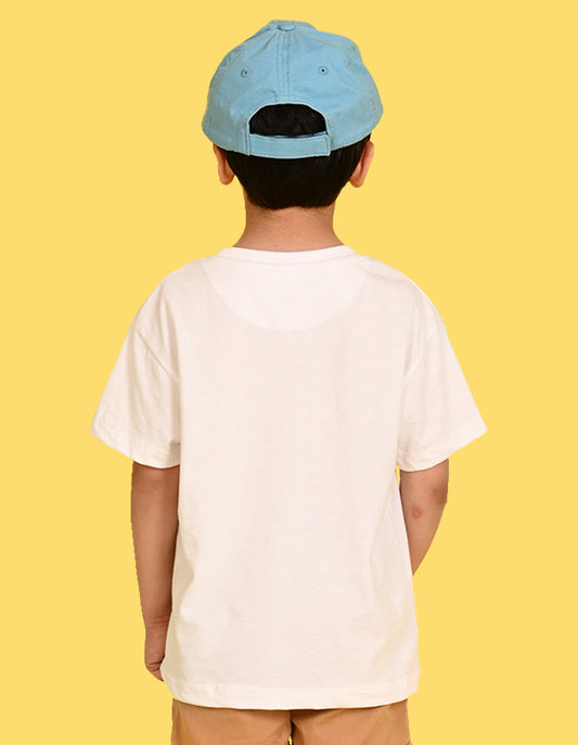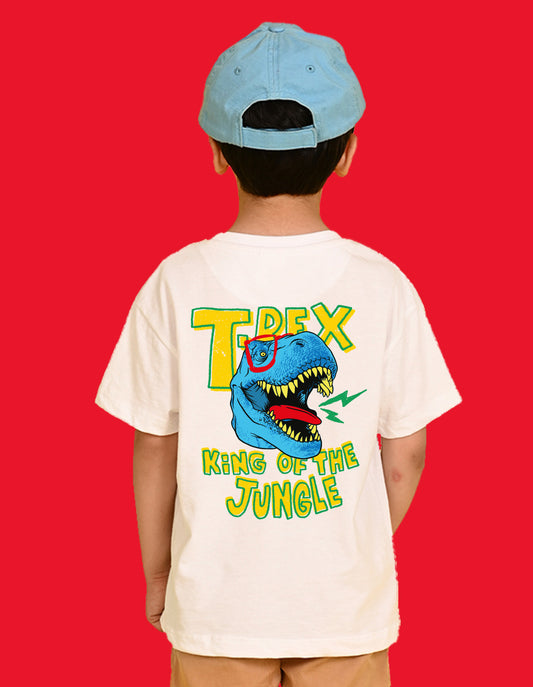 Nusyl Boys White T-Rex Text Printed Short Sleeve Oversized T-Shirt