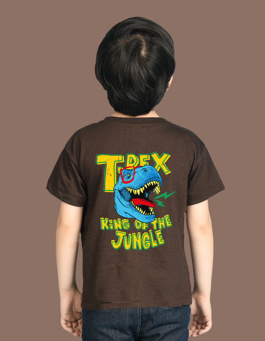 Nusyl Boys Brown T-Rex Text Printed Short Sleeve Oversized T-Shirt