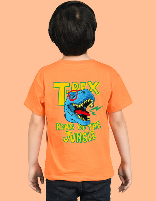 Nusyl Boys Orange T-Rex Text Printed Short Sleeve Oversized T-Shirt