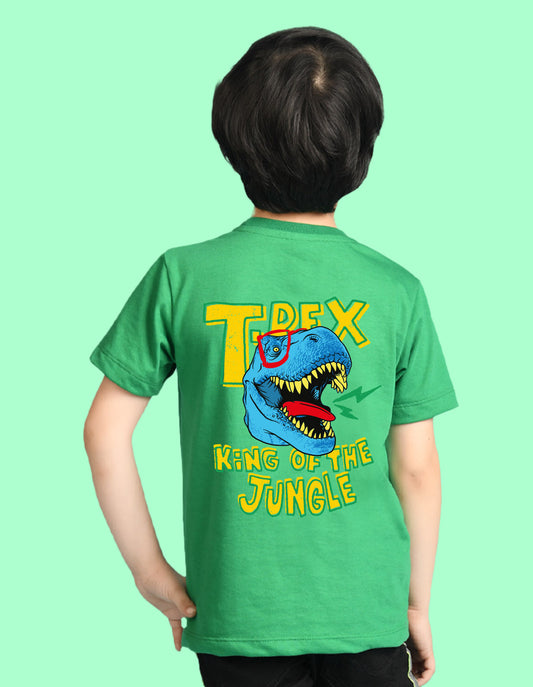 Nusyl Boys Green T-Rex Text Printed Short Sleeve Oversized T-Shirt